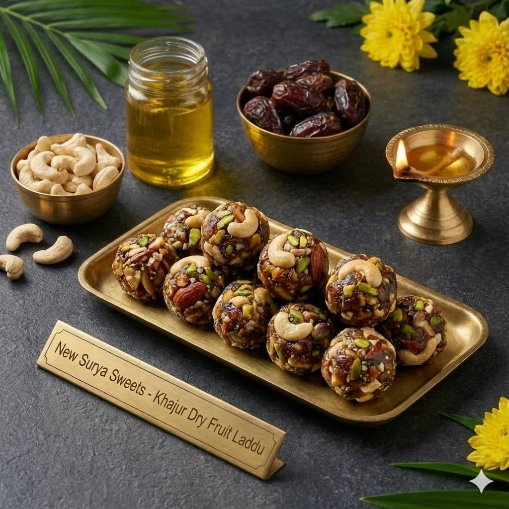 This robust laddu made of dates, nuts, dessicated coconut and more, with a generous dash of ghee and drycoconut , will give your taste buds a burst of flavour.